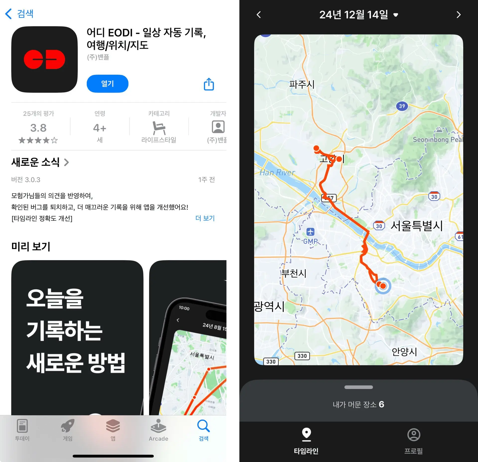 “어디 앱은 하루의 기록을 지도와 타임라인으로 시각화해서 나만의 스토리를 만들어줘요.”